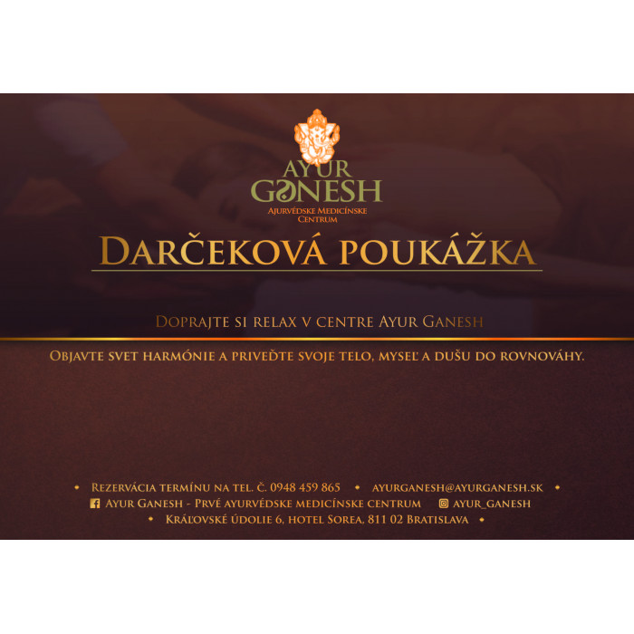 Darčekovú poukážku v nominálnej hodnote 100 € určenú na čerpanie služieb v centre Ayur Ganesh.
